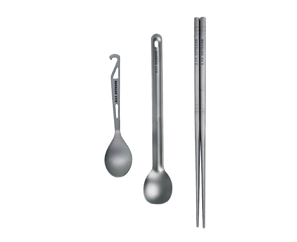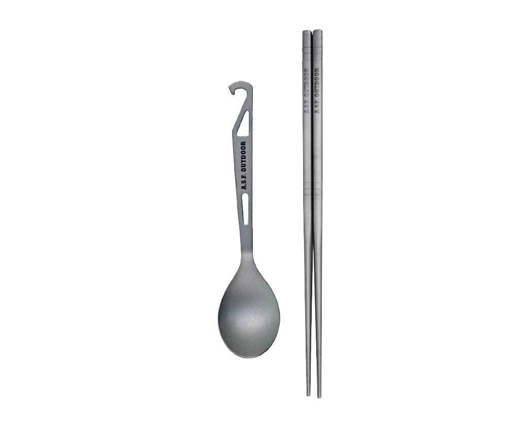 ASFOUTDOOR チタン製カトラリーセット (箸・ロングスプーン)
